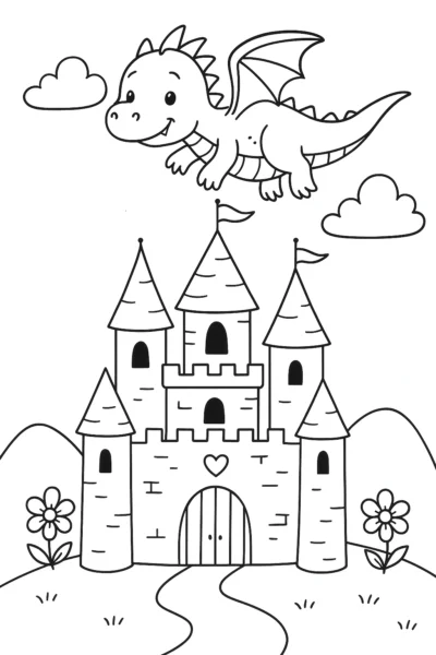With its simple outlines, this castle and dragon coloring page is ideal for preschoolers and elementary-aged children. Kids can dream up their own stories as they color, making the dragon green, purple, or even rainbow! The castle can be decorated with sparkling jewels or classic stone—there’s no limit to the imagination.