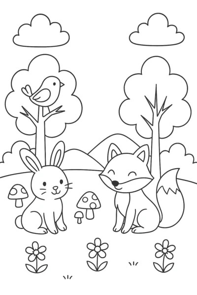 - Friendly animals: The smiling fox and bunny invite little artists to imagine fun woodland adventures.